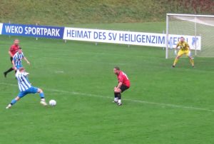 Bereits in der 12. Minute ging der SVH in Führung: Nach einer präzisen Ecke von Vincent König stieg Timo Scherer am höchsten und köpfte den Ball zum 1:0 über die Linie.